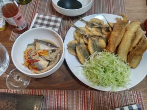 メジロ、太刀魚は刺身・しゃぶしゃぶ、鯵は南蛮漬けにしました。