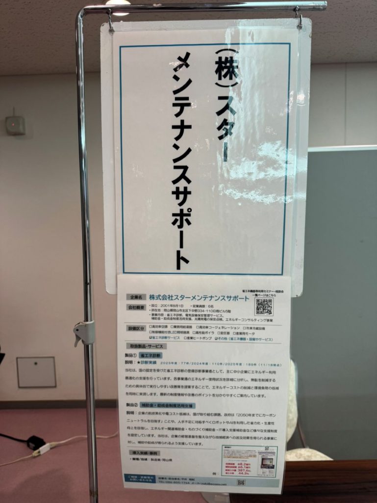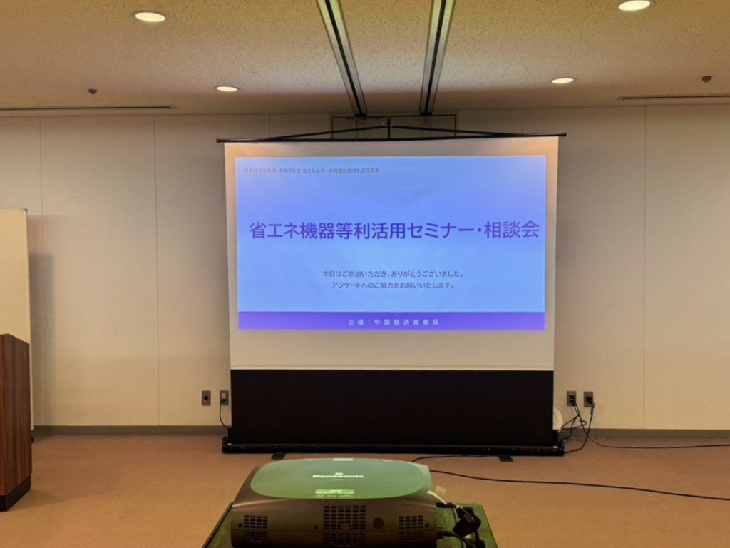 さて、先日、中国経済産業局主催の「令和7年度 省エネ機器等利活用セミナー・相談会」に参加してきましたので、今回はその様子をレポートします!